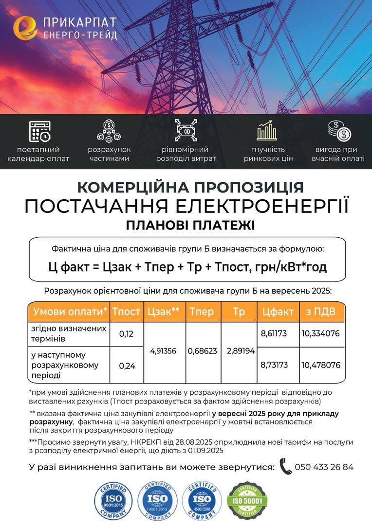 Індивідуальна комерційна пропозиція Попередня оплата