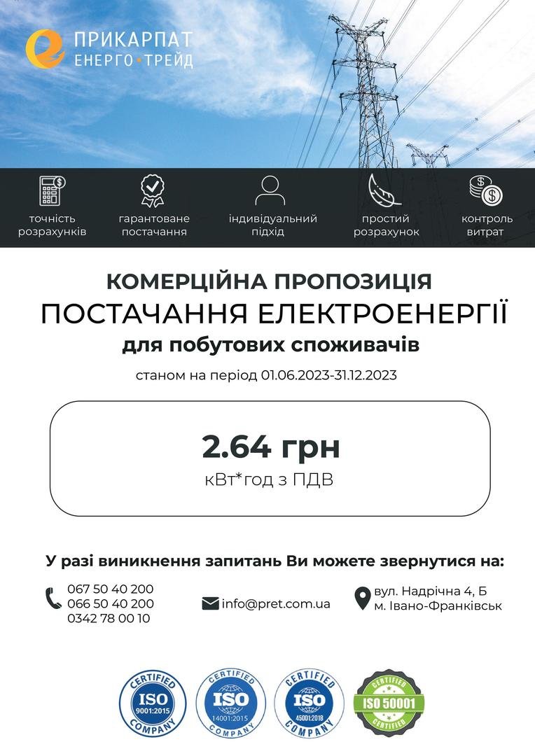 В якості постачальника електричної енергії ТОВ "ПРИКАРПАТЕНЕРГОТРЕЙД" пропонує споживачам: