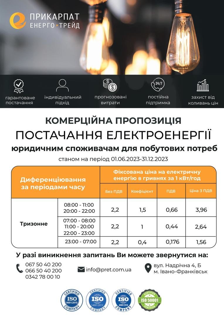 В якості постачальника електричної енергії ТОВ "ПРИКАРПАТЕНЕРГОТРЕЙД" пропонує споживачам: