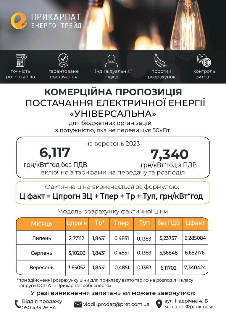 Комерційна пропозиція № 3«Для бюджетних/комунальних установ (по факту)» на вересень 2023