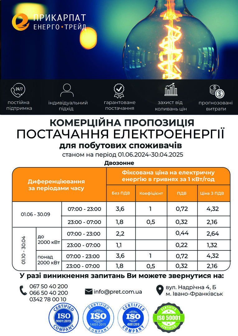 Комерційна пропозиція №1.1 «Для дому з двозонним диференціюванням за періодами часу» на період з 01 червня 2024 року по 30 квітня 2025 року включно