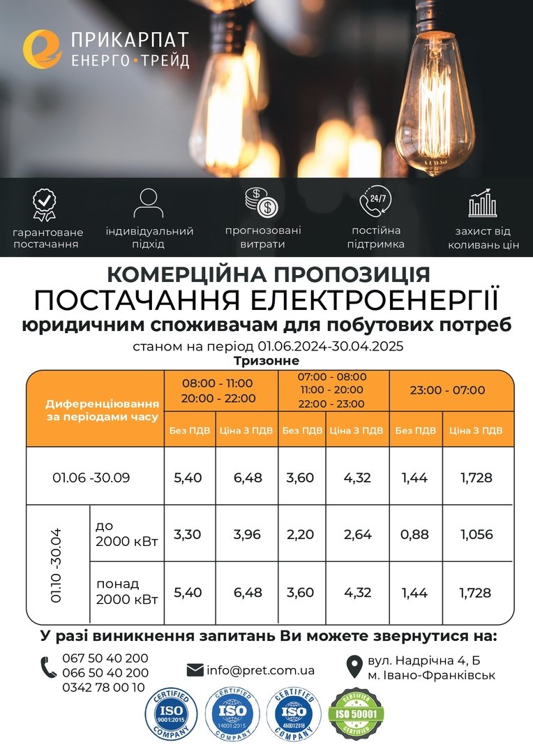 «Для побутових потреб (по факту) з тризонним диференціюванням за періодами часу» з 01 червня 2024 року по 30 квітня 2025 року включно