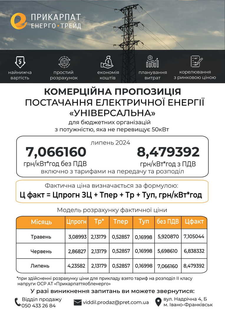 Комерційна пропозиція №3«Для бюджетних/комунальних установ» (по факту) на липень 2024 р