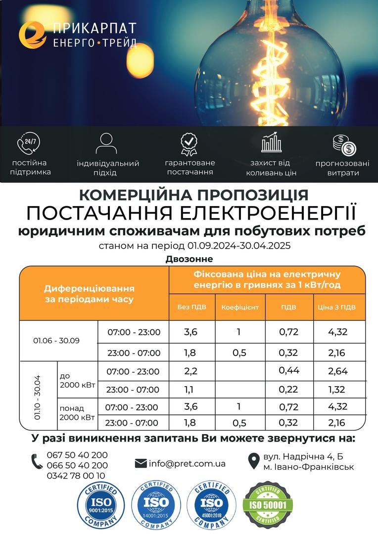 Комерційна пропозиція № 2.1 «Для побутових потреб (по факту) з двозонним диференціюванням за періодами часу з 01 вересня 2024 року по 30 квітня 2025 року включно